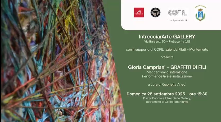 In evidenza, NewsVIDEO: Gloria Campriani – Graffiti di fili https://intrecciarte.it/wp-content/uploads/2025/10/WhatsApp-Video-2025-10-06-at-10.14.20.mp4 Leggi tutte le informazioni dell’evento Ottobre 6, 2025/da intrecciarte https://intrecciarte.it/wp-content/uploads/2025/10/video.jpg 463 835 intrecciarte https://intrecciarte.it/wp-content/uploads/2019/12/blanc.png intrecciarte2025-10-06 08:37:402025-10-06 08:40:12VIDEO: Gloria Campriani – Graffiti di fili